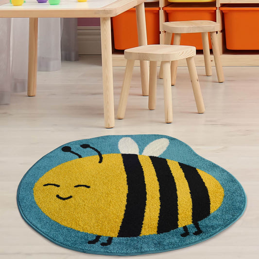 Colour Pop Bee Blue Kids Rug - 100 X 100cm (3ft 2" x 3ft 2")