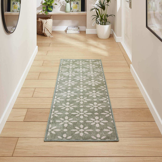Coral H1062 Green Modern Washable Rug