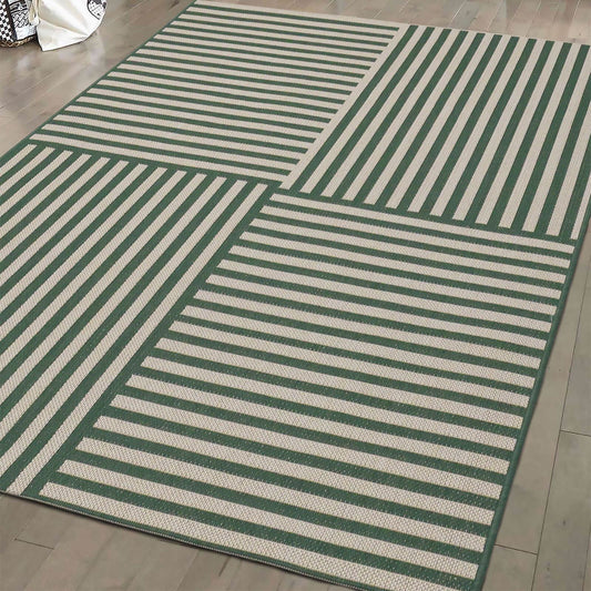 County Multi Stripe Green Geo Rug