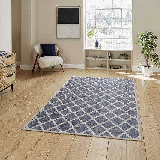 Coral H1062 Light Grey Modern Washable Rug