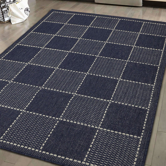 Flatweave Gel Check Navy Rug