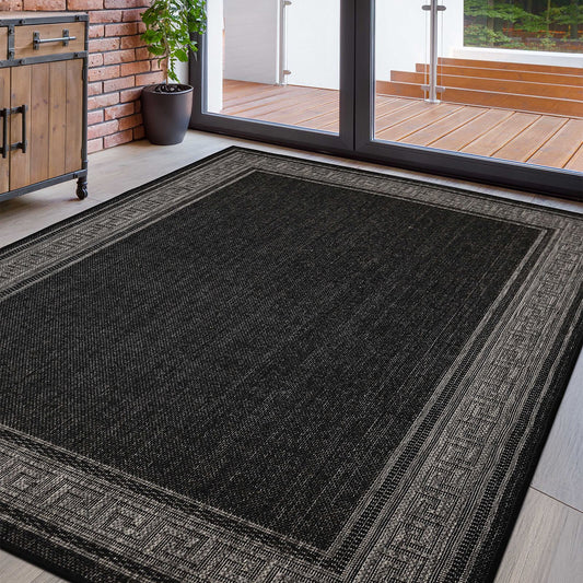 Flatweave Gel Greek Key New Black Rug
