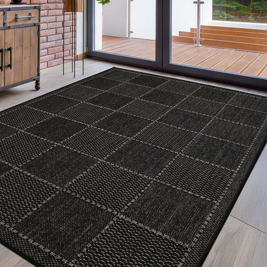Flatweave Gel Check New Black Rug