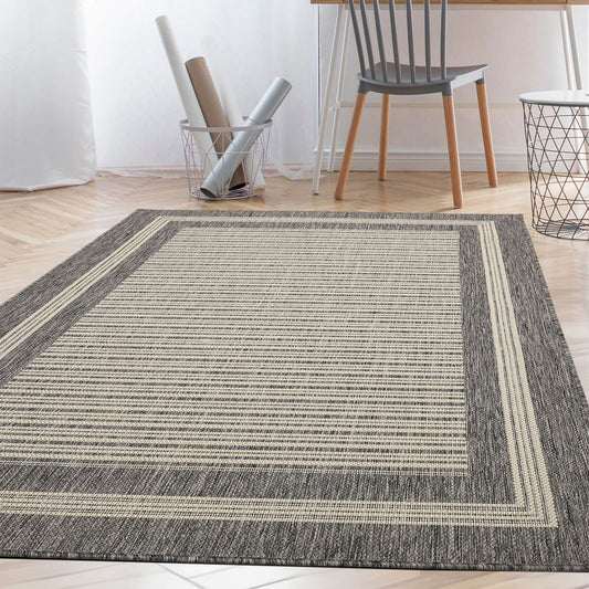 Flatweave Gel Border Steel Grey Rug