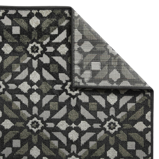 Monaco Mosaic Black and Charcoal Outdoor Rugs