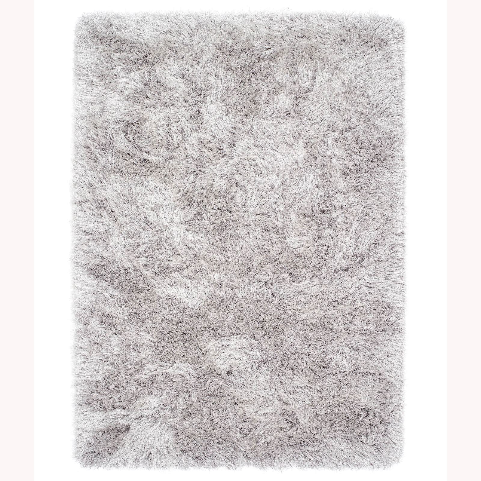 Contemporary Extravagance Plain Supersoft Shaggy Silver Rugs 60X120Cm