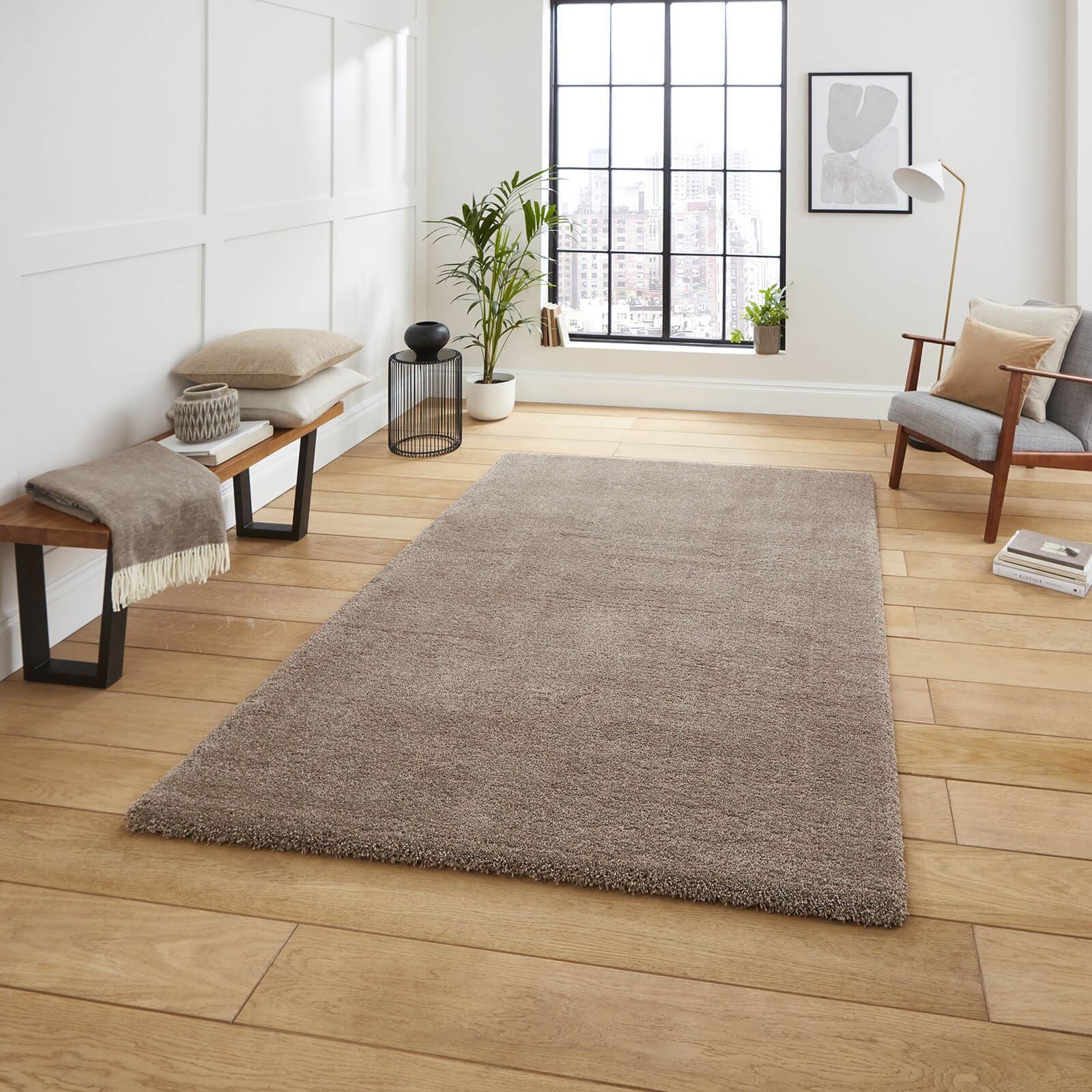 The Deluxe Plain Shaggy Rug in MInk, the perfect addition to any shaggy bedroom. Measuring 80x150cm, this rug is made from high-quality polypropylene, ensuring durability and longevity. The super heavy weight and high-density pile design of this rug add depth and dimension to any space, while its shaggy feel ensures comfort underfoot. The MInk colorway is neutral and versatile, making it the perfect choice for any room. The plain shaggy design of this rug is both cozy and stylish, making it the perfect choice for any shaggy bedroom. Whether you're looking to add a cozy touch or simply want to create a stylish focal point, the Deluxe Plain Shaggy Rug is the perfect choice. Its high-quality materials and stylish design make it a must-have for any modern home. Plus, the neutral color makes it easy to incorporate into your existing decor.