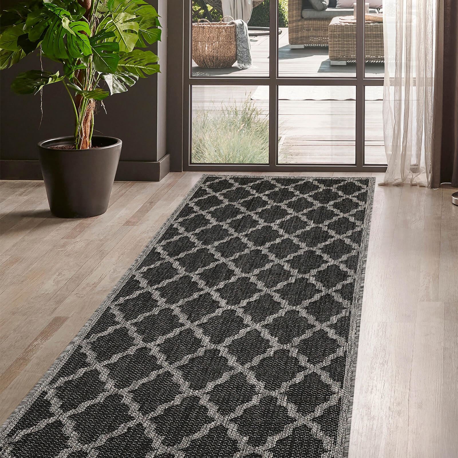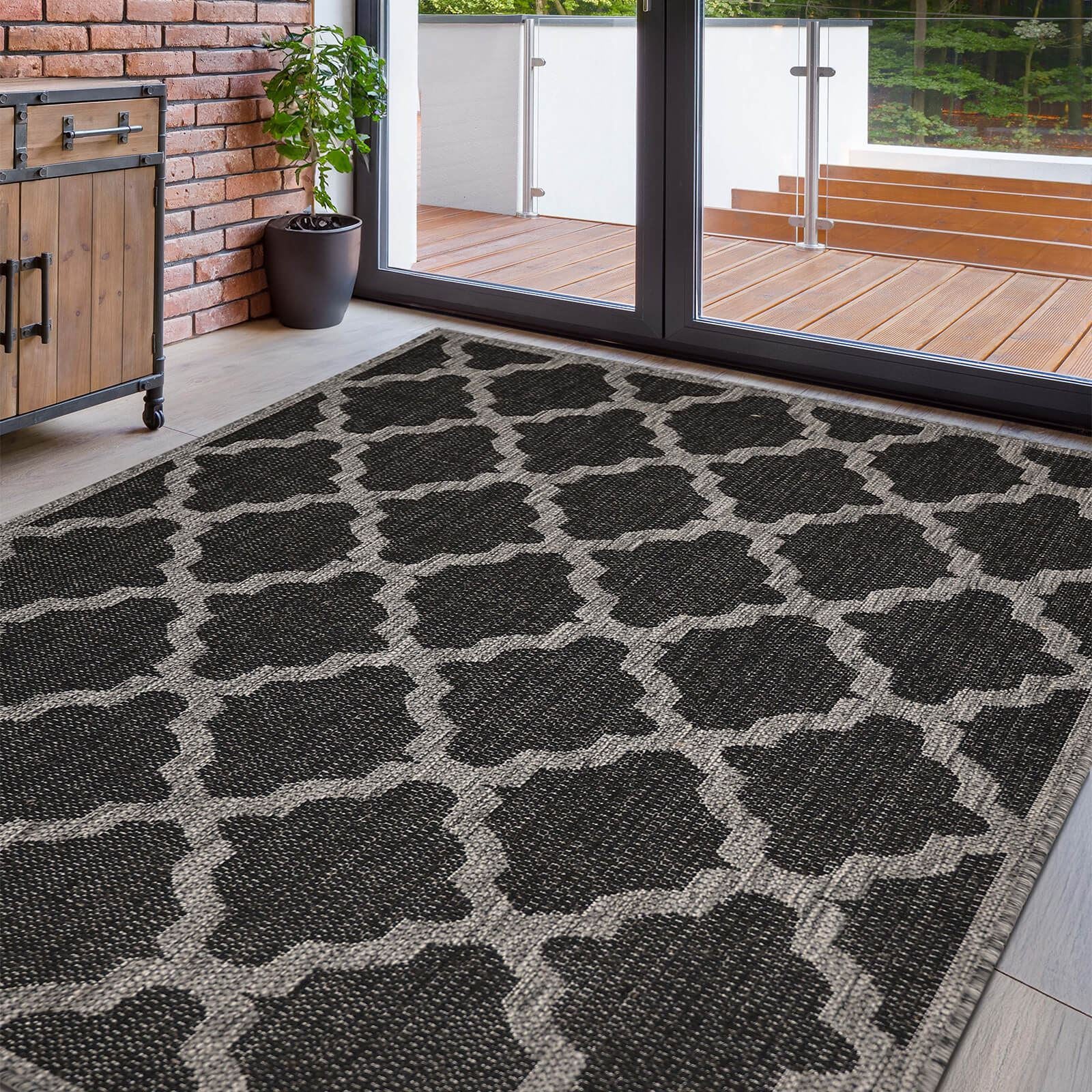 Flatweave Gel Trellis Black Rug