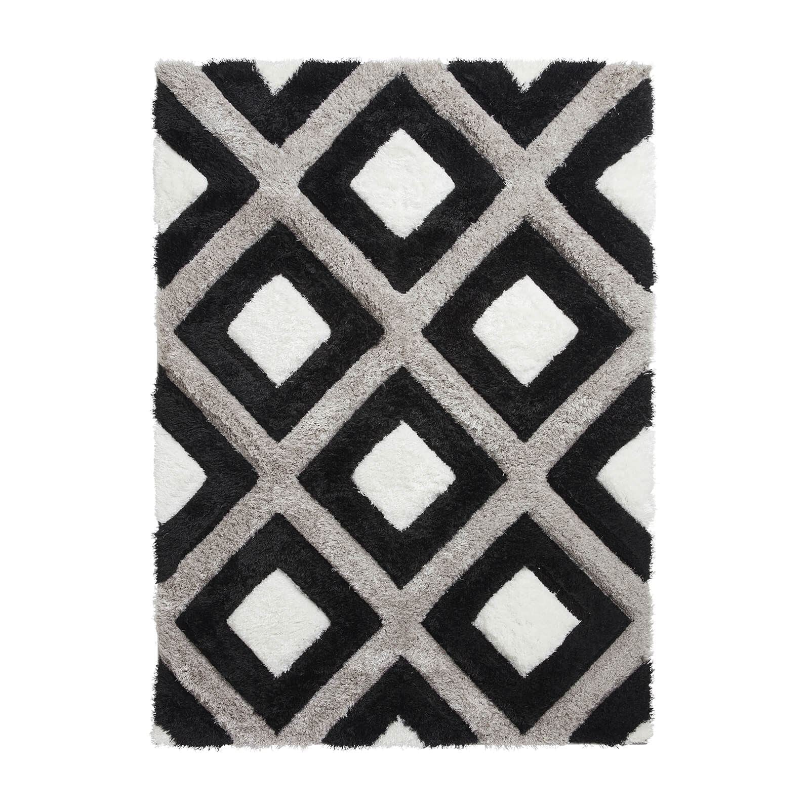 Introducing our Olympia 3D Geometric Diamond Shaggy Rug, a stylish and comfortable addition to any shaggy living room. Measuring 80x150 and featuring a stunning Black/White colorway, this rug is sure to enhance the look and feel of your home. Featuring a unique 3D diamond design, this rug adds depth and texture to your space, making it a true standout piece. The thick shaggy pile provides a plush and cozy feel underfoot, perfect for lounging and relaxing. Crafted from high-quality polypropylene, this rug is both durable and easy to maintain. It resists stains, fading, and shedding, ensuring that it will continue to look great for years to come. Whether you're looking to add a touch of sophistication to your living room or want to create a cozy atmosphere, our Olympia 3D Geometric Diamond Shaggy Rug is the perfect choice.