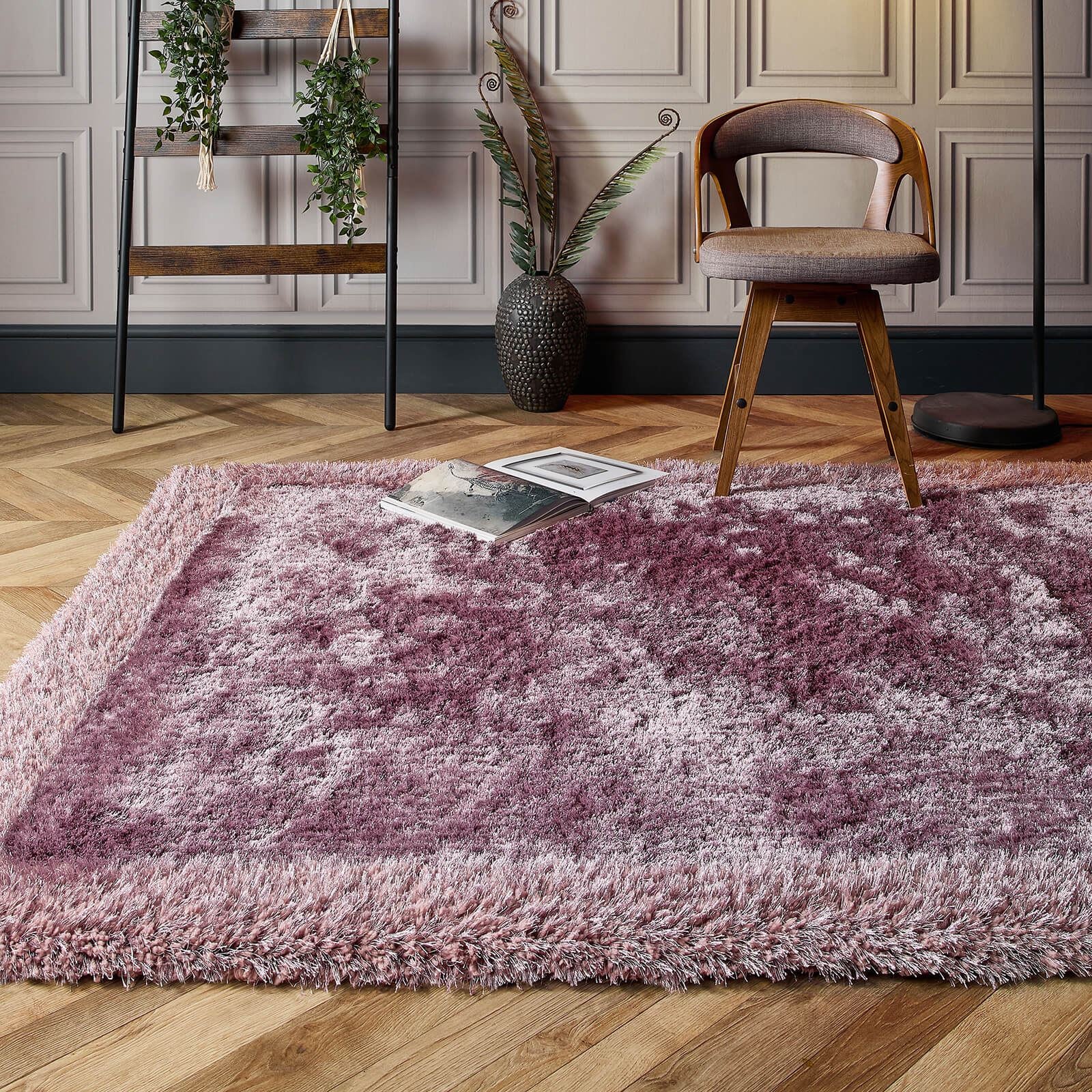 Shimmer Shaggy Border Purple Modern Rugs